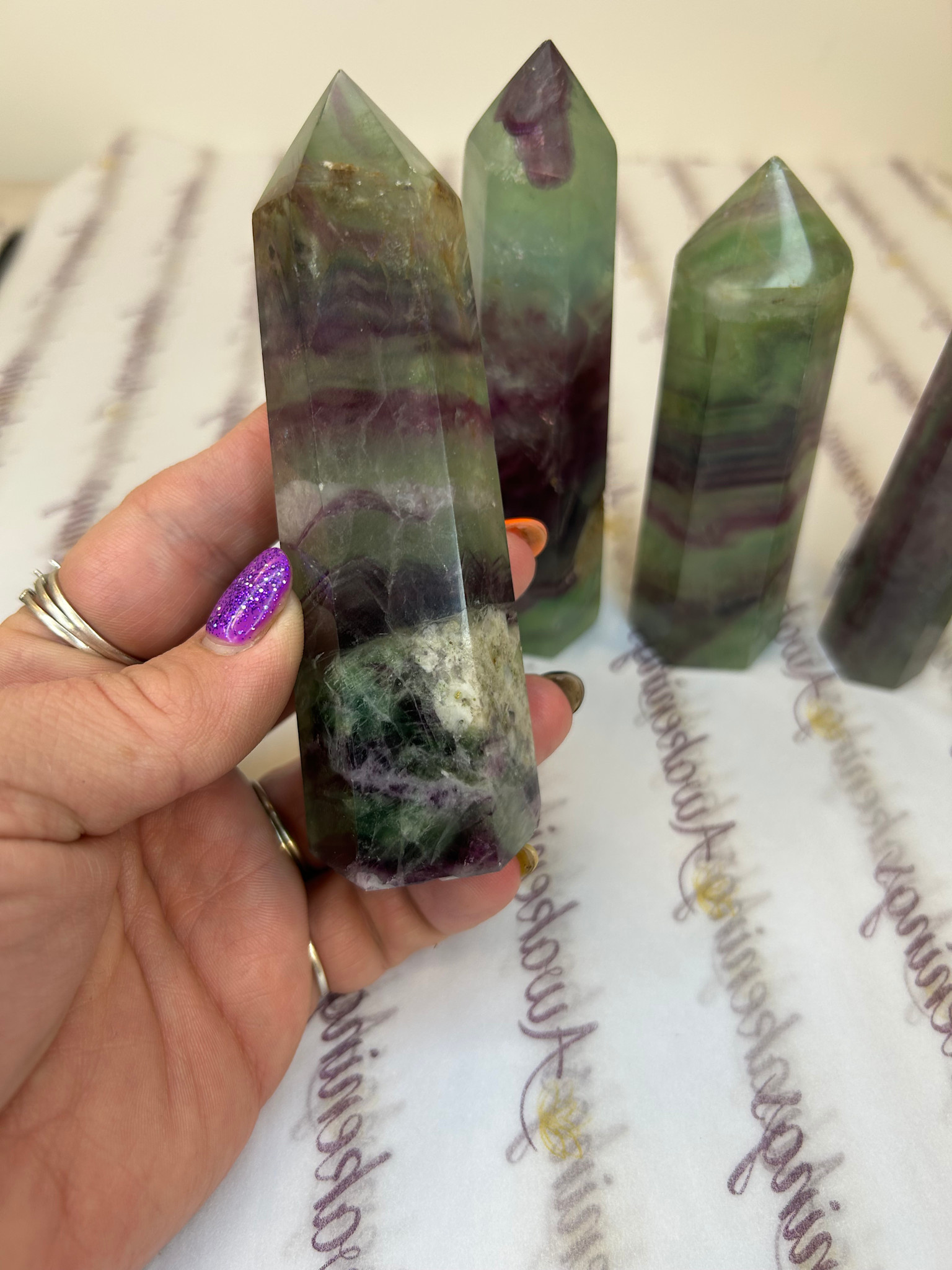 Recent articlesView productRainbow Fluorite Tower/Generator - Large 4-6''$29.99View productReal Turquoise Flat Slice- Small - .25 -1''$4.44View productJunk Journal Local Hand Made 5.5'' x 8'' x 2''$99.99View productChevron (Dream) Amethyst Tower Point Generator - Medium - 3-4''$22.22View productRainbow Fluorite Puffy Heart - XL With Stand$44.44